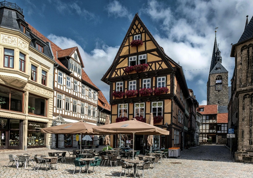 Houtbouw bleef populair en bereikte in de middeleeuwen een architectonisch hoogtepunt. Overal in Europa verrezen vakwerkhuizen, waarbij houten balken een stevig raamwerk vormden en de open ruimtes werden opgevuld met klei of bakstenen. Een prachtig voorbeeld is het historische centrum van Quedlinburg in Duitsland, waar honderden vakwerkhuizen al vanaf de 16e eeuw fier overeind staan. In Scandinavië lieten de Vikingen zien hoe sterk hout kon zijn met hun iconische langhuizen en indrukwekkende houten schepen.
